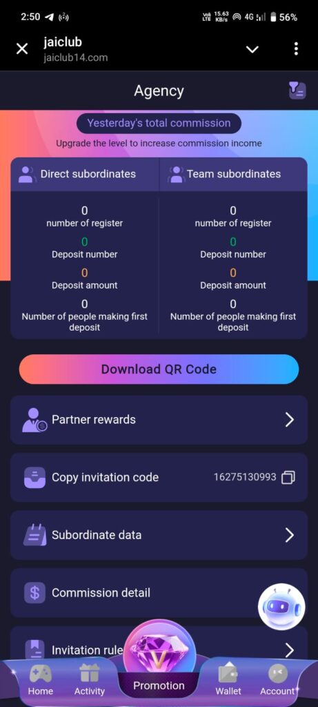 Jai Clubs also offers a referral system where users can invite others and earn commission.